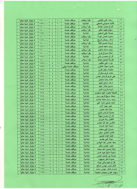 جمهورية العراق وزارة التربية المديرية العامة للتربية في محافظة واسط عاجل تعلن مديرية تربية واسط عن اسماء الفائزين بالتعيين للدرجات الوظيفية كــ ( موظف خدمة ) التي أعلن عنها سابقاً وكما مدرجة في المرفقات أدناه :- * المرفقات/