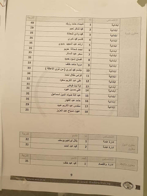 تعلن محافظة الانبار عن أسماء المقبولين للتعيين على ملاك دوائر الانبار ( مديرية زراعة الانبار - قسم رعاية ذوي الاحتياجات الخاصة - الصحة والسلامة المهنية - دائرة العمل والتدريب المهني ) المدرجة في الجداول المرفقة أدناه :-